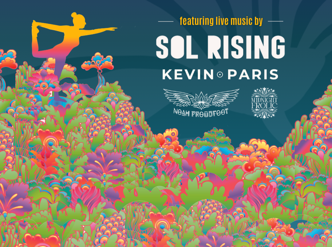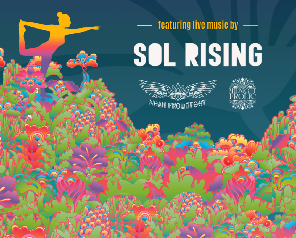 From opening set to the sunset dance jam - groove to live music by Sol Rising, Noah Proudfoot + Midnight Frolic.